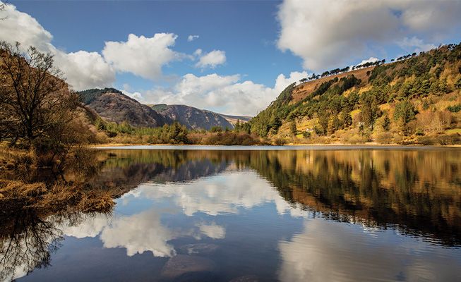 We head into the Wicklow Mountains National Park which covers 20,000 hectares of stunning mountain scenery, with vast sweeps of heather-clad moorland, hills, bogland, deep glacial valleys and lakes. The mountains are also home to a variety of wildlife habitats.