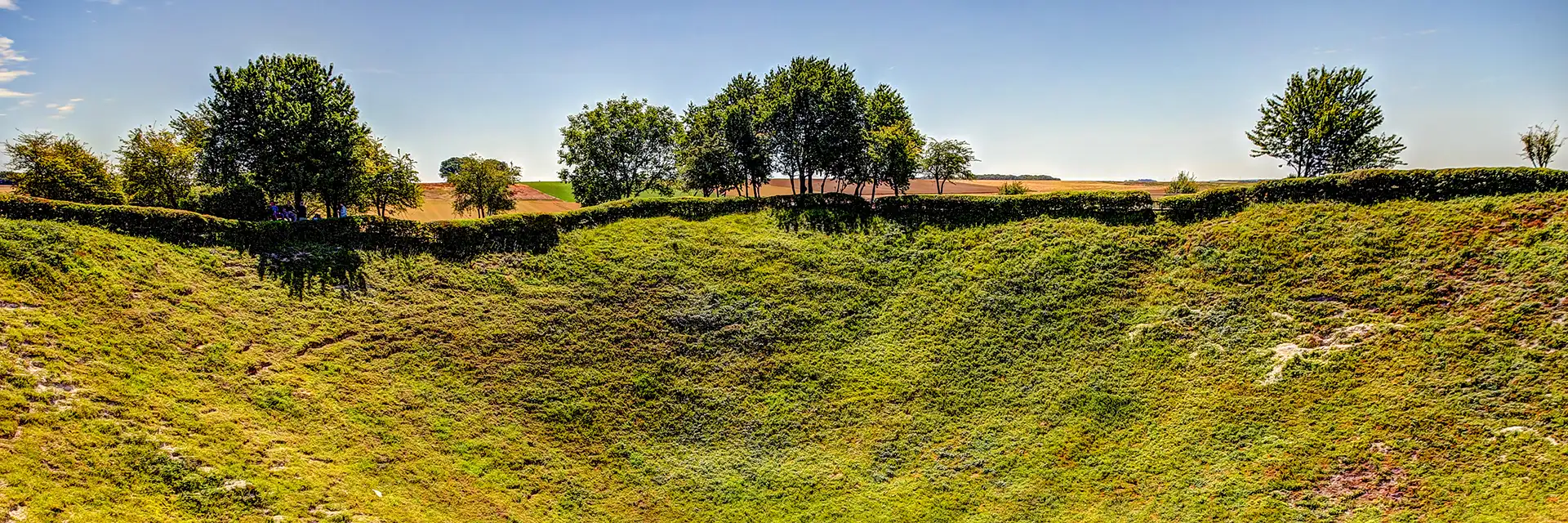 Lochnagar Crater, once the Western Front’s deadliest square mile. The large crater was formed when a mine detonated underneath the German front line on 1st July 1916, caused by the British Army’s 179th Tunnelling Company Royal Engineers (nicknamed ‘The Moles’). This explosion signified the start of the Battle of the Somme, and this day was to become the bloodiest day in the history of the British Army, with 57,000 casualties.